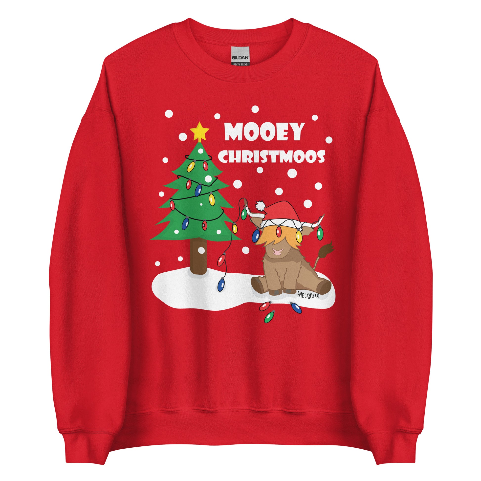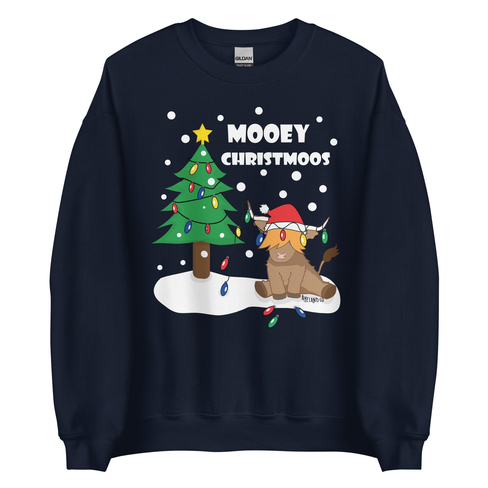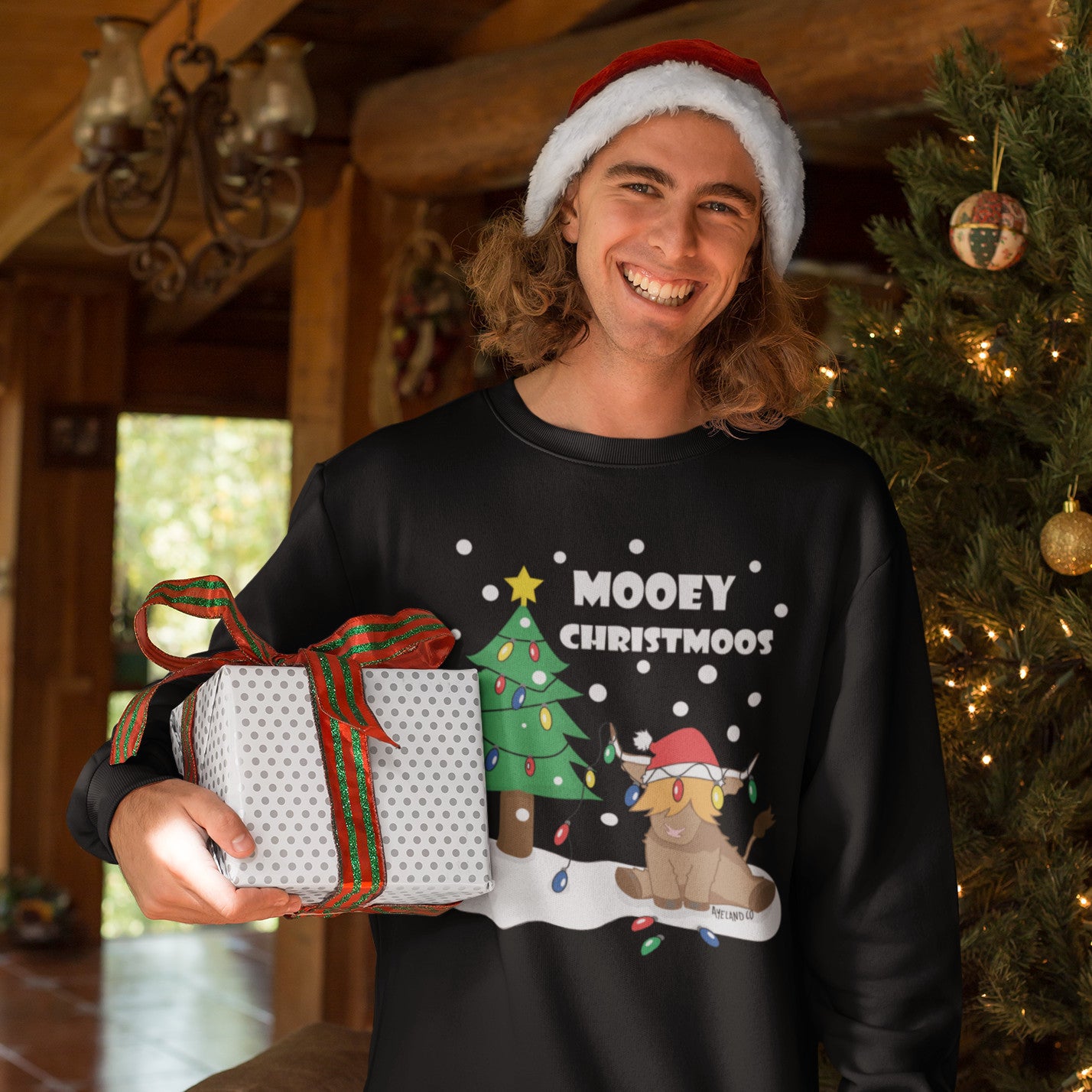Highland cow mooey christmoos ugly christmas sweatshirt for highland cattle lover men