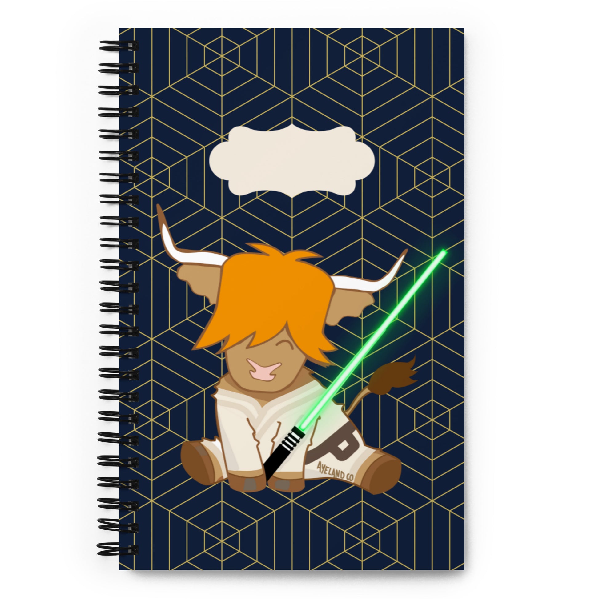 The perfect notebook for a highland cow lover that also loves star wars movies. The inside of the book contains dotted lines which makes it perfect to write or doodle on it.